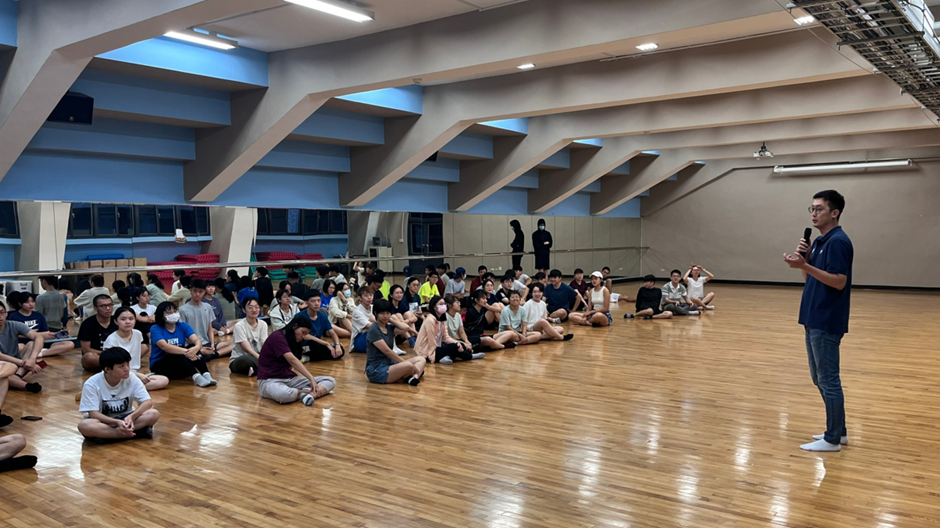 共跑營正式起跑當天,因逢下雨場地溼滑,臨時改至體育館室內韻律教室上課,但仍不影響學員相互交流與學習。由運動學程專任助理教授孫秉宏拉開序幕,介紹運動產業與文化學士學位學程的創辦理念,以及共跑營與學程未來規劃課程之關聯。體育室主任王清欉於開場時表示:「政大很多同學對跑步運動很有興趣,但跑得正不正確容易造成姿勢及體能上的侷限。」因此,期望藉由與SportX運動學程合辦共跑營,透過基礎跑步操、跑步肌力與全身協調性訓練等,幫助想提升自身跑步能力的校內學生,強化身體素質,以完賽2023政大校園馬拉松為目標。